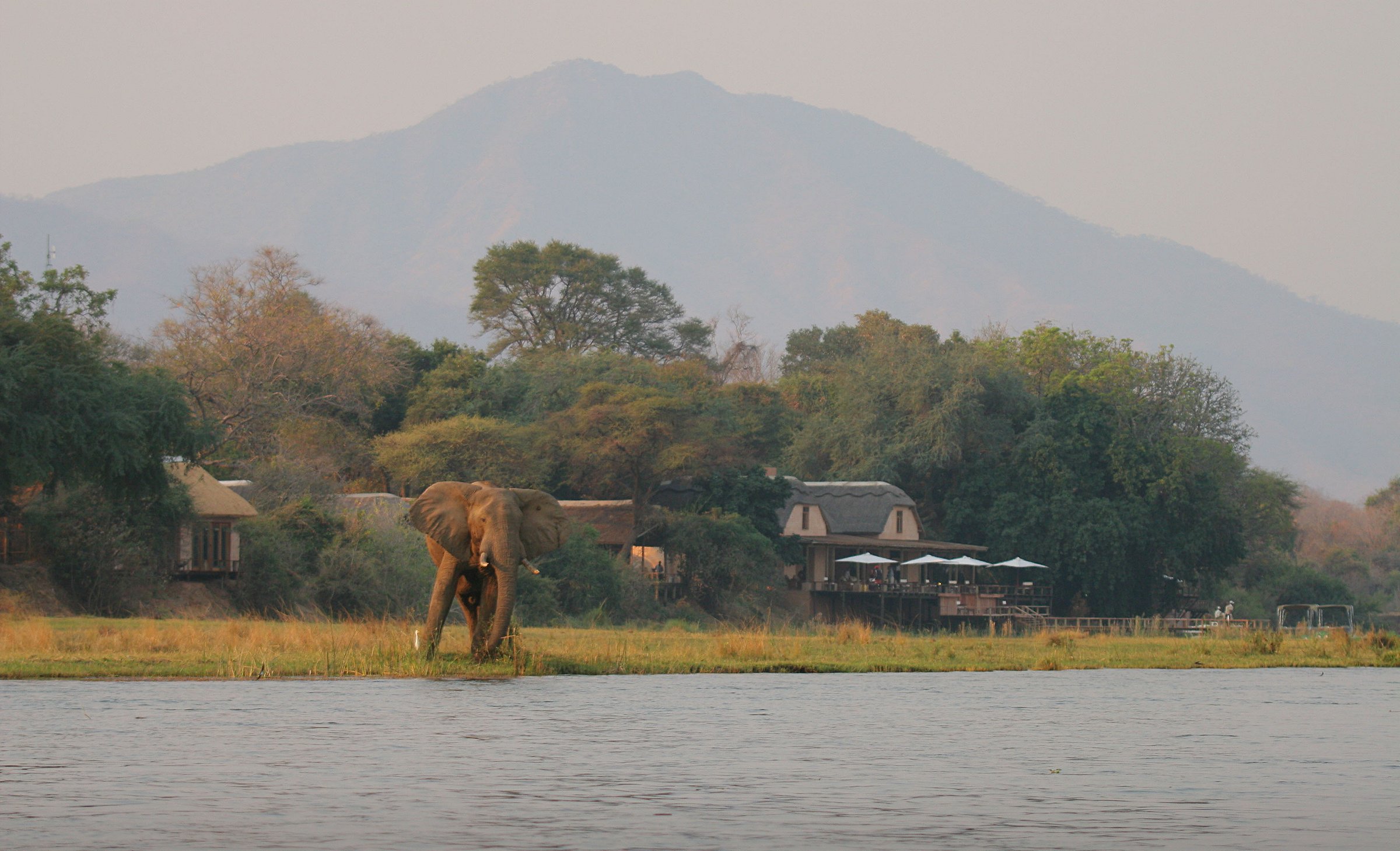 A large but cosy privately owned resort, Royal Zambezi Lodge is located in Zambia on the banks of the great Zambezi River only a short distance from the Lower Zambezi National Park and right across from Zimbabwe's renowned Mana Pools World Heritage Site. Royal provides the utmost in luxury and gastronomy while allowing guests to fully experience the views, sounds, and smells of the African environment. For honeymooners, Royal offers the ideal ambience, while families travelling together will love its specially designed family suite. There is plenty of room for everyone to enjoy their special stay. The main structure and the separate private apartments are made to allow nature to take the lead in guaranteeing that visitors enjoy the laid-back pace and spectacular experiences.